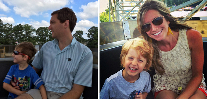 Jake and Matt rode their first Ferris wheel on Saturday. They were excited as they waited to get on.