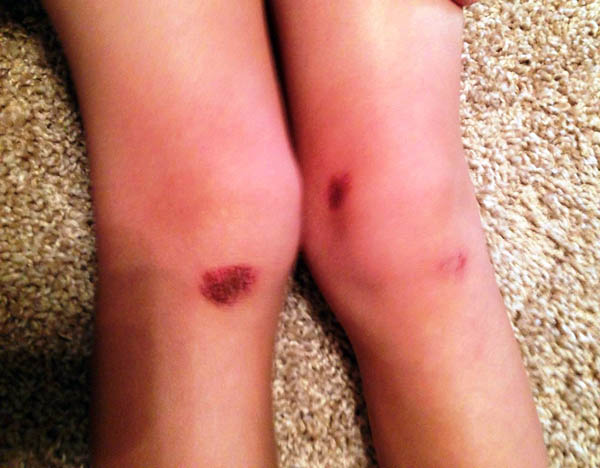 Those knees look like mine when I was a kid. LOL. Boys had nothing on me! Wonderful illustration of how Jesus holds on to us no matter who, what or where! Love you girl.