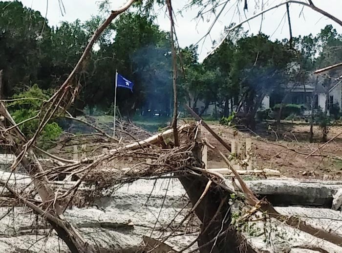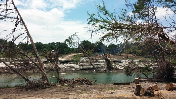 The force of the flood knocked down trees over a hundred years old and stripped the bark off forty feet up.