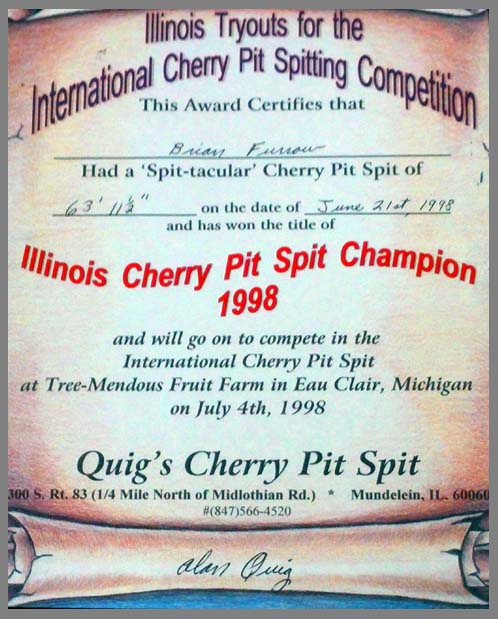 As most of you know, my husband is the 1998 Illinois State Cherry Pit Spitting Champion. However, it appears the mantle is passing to the next generation.