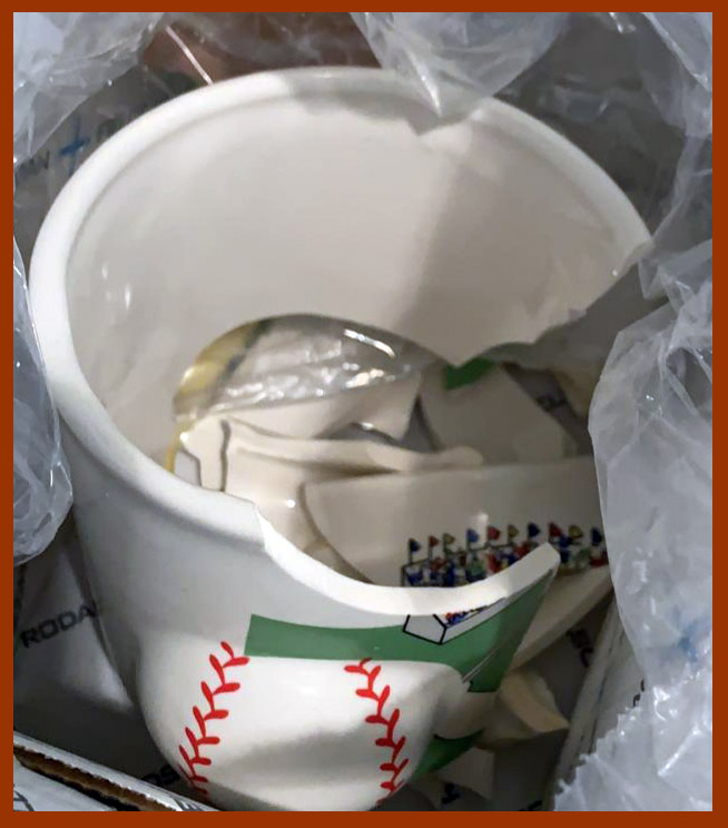 We brought the mug home with us, carefully wrapped it in bubble wrap, boxed it up, and sent it off. This is how it arrived…