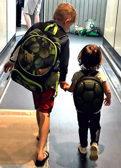 Jake and Matt rode their first Ferris wheel on Saturday. They were excited as they waited to get on.